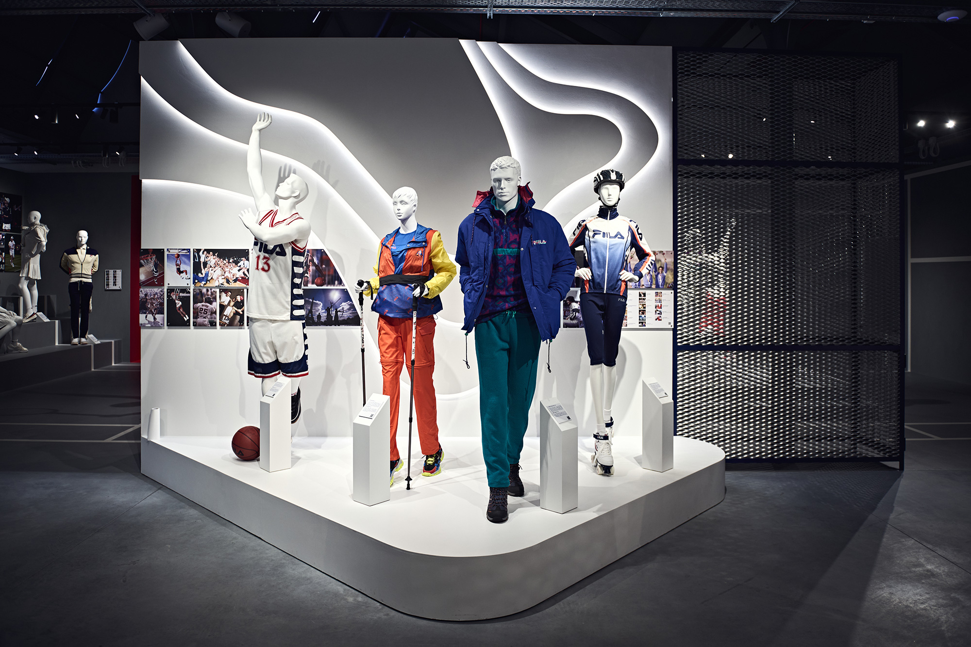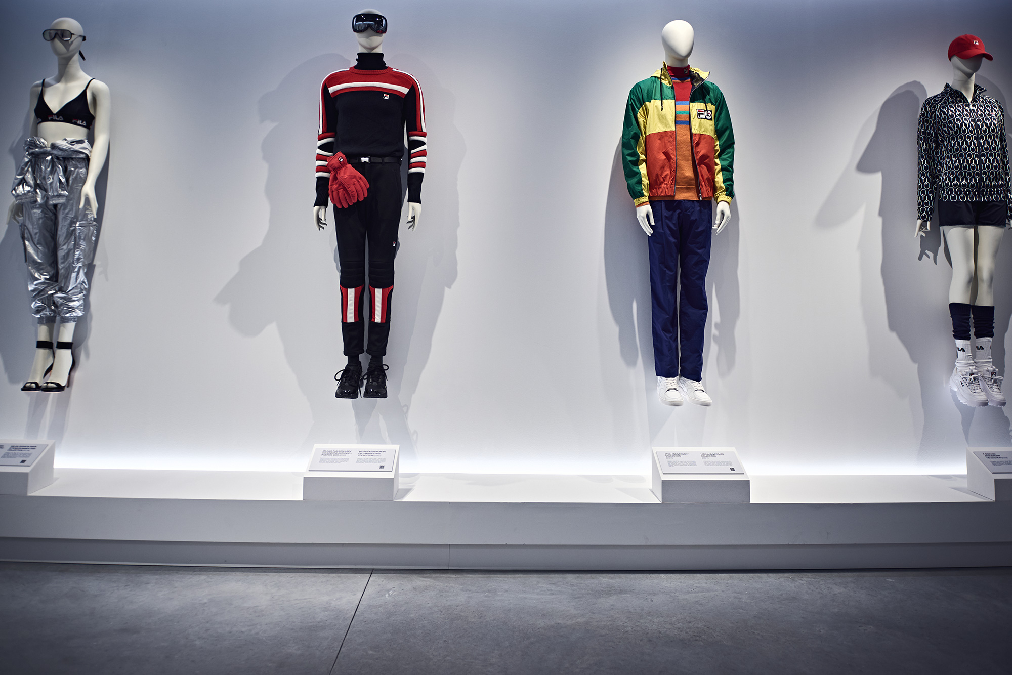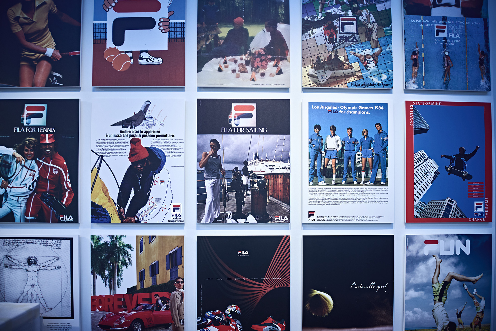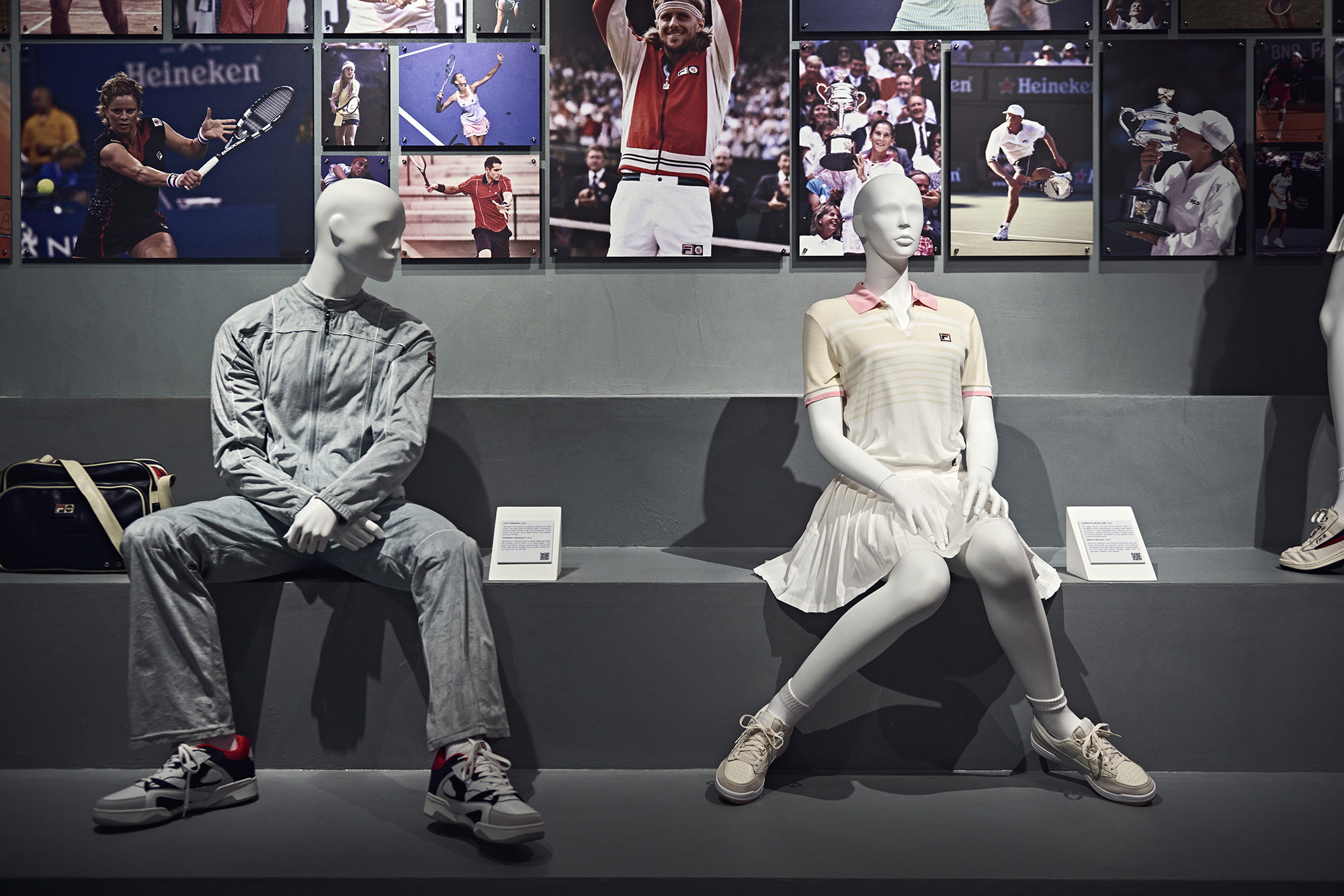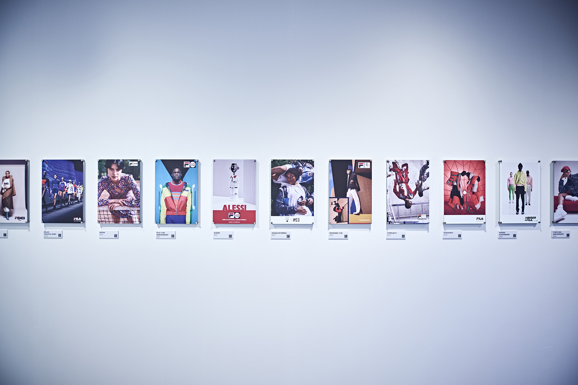 FILA è un universo visivo. In questa sala, campagne iconiche e scatti d’avanguardia raccontano come il brand abbia forgiato la propria identità attraverso immagini diventate icone.